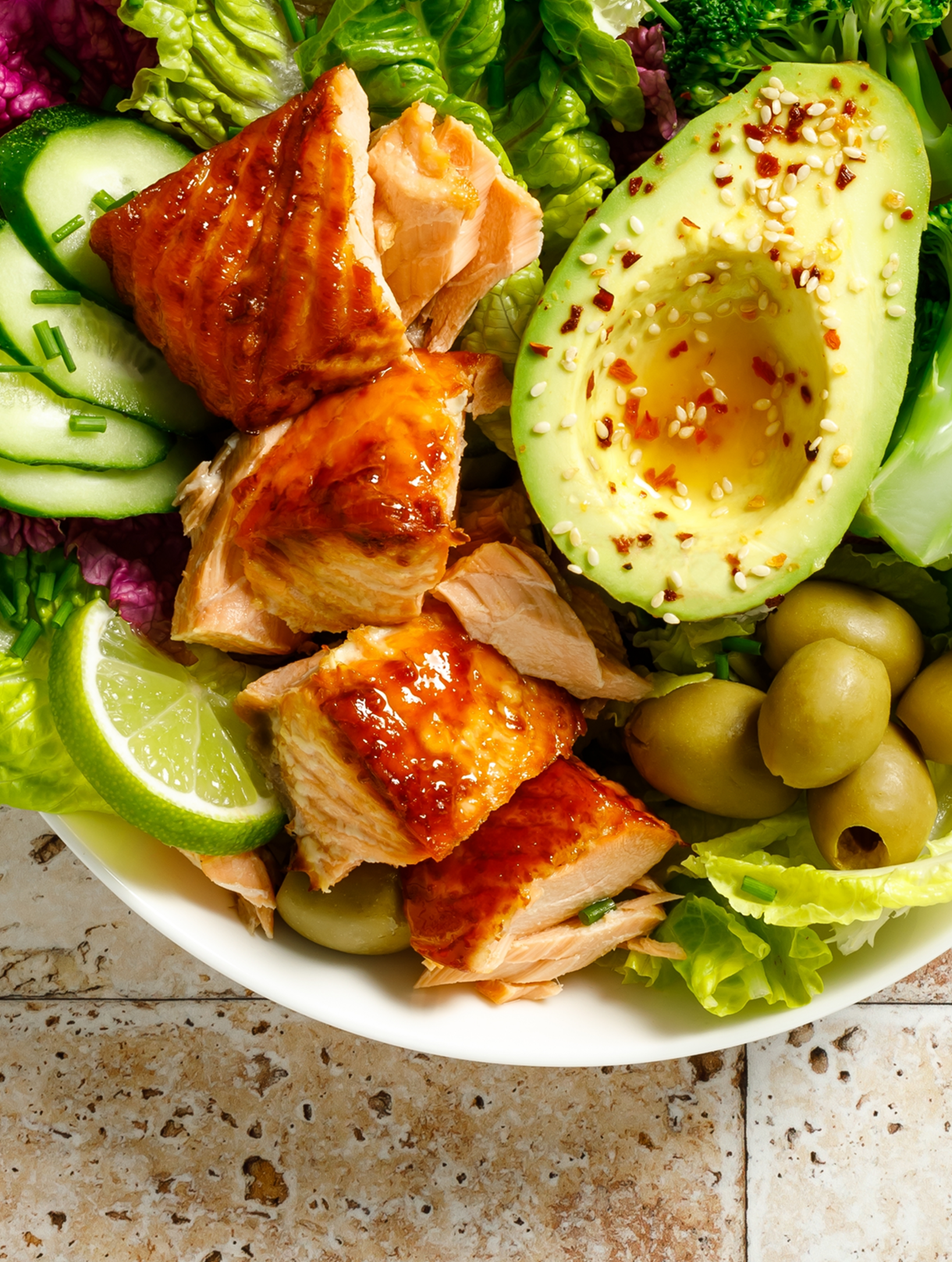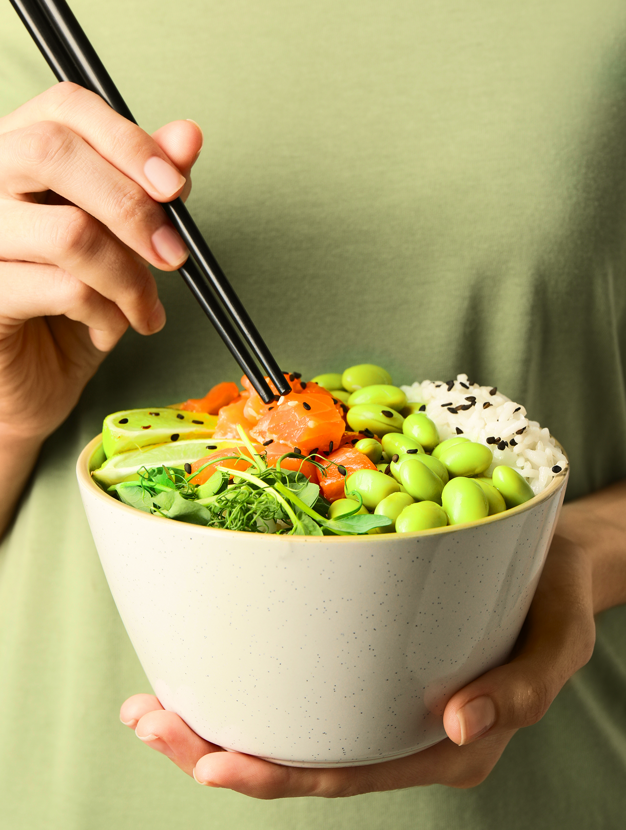 Sourced fish / tofu, avocado, edamame, quinoa & mango